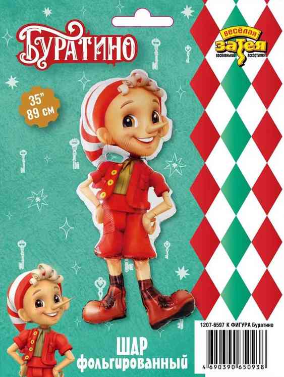 Шар фольга фигура Буратино 35" 89см ВЗ (упак)