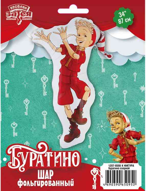 Шар фольга фигура Буратино озорной 34" 87см ВЗ (упак)