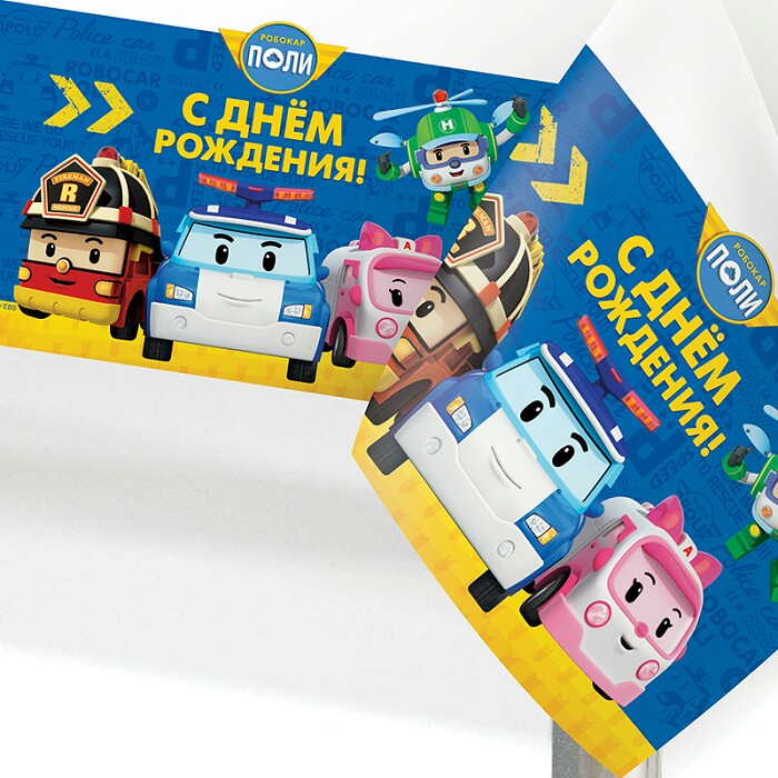 Скатерть ПЭТ 132х180см Робокар Поли и друзья ВесПраздник