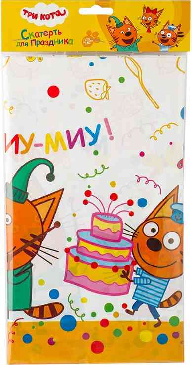 Полиэтиленовая скатерть для пикника. Размер 132*180см. Рекомендуем использовать с другими товарами коллекции «Три кота» (стаканчики, тарелки, салфетки, языки-гудки, воздушные шары, хлопушки, мыльные пузыри, свечи), для оформления вашего торжества в едином стиле!