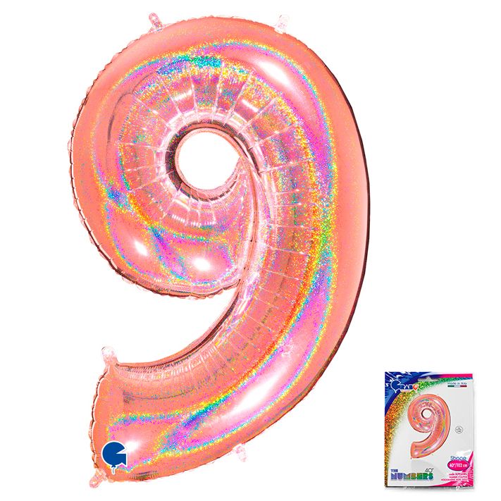 Шар фольга Цифра 40''/GR Розовое Золото голография "9"