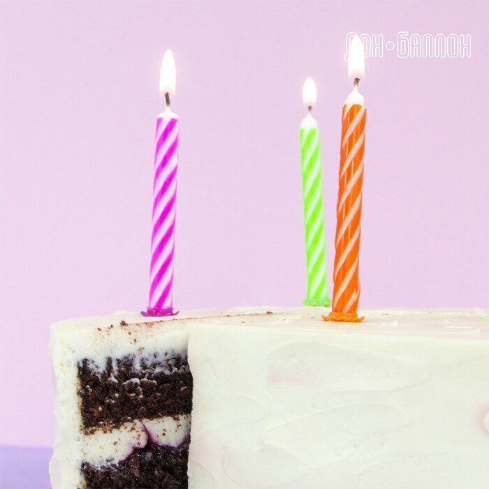Свеча для торта с держателем витая Радужный микс ассорти 8см (уп12) ВВ