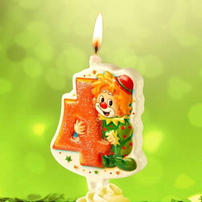 Свеча для торта воск, 12 см, цифра 4 Клоун