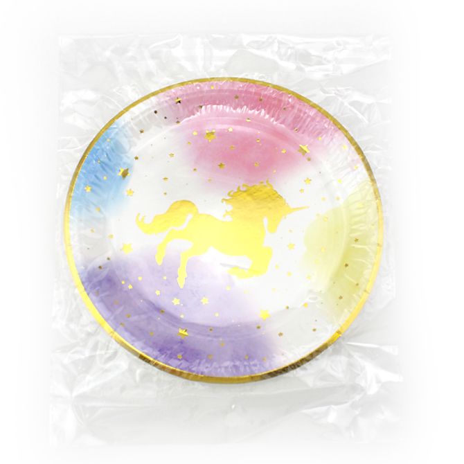 Тарелки бумага 180мм Единорог золотой Акварель уп6