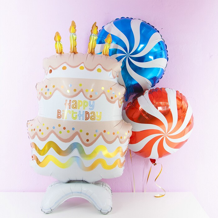 Шар фольга фигура на подставке Торт на День Рождения 38" 97см GR