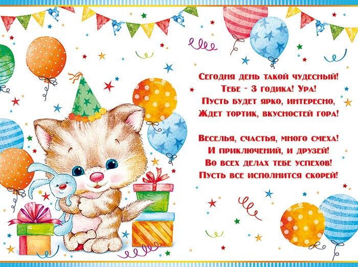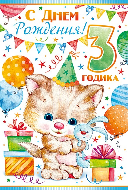 Открытка А5 С днём рождения! 3 годика