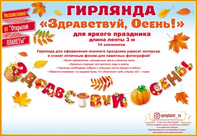 Гирлянда буквы на ленте 300см Здравствуй осень