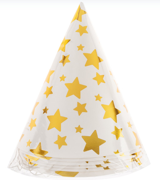 Колпаки бумажные Звезды Микс белый золото металлик 16см (уп6) ВВ
