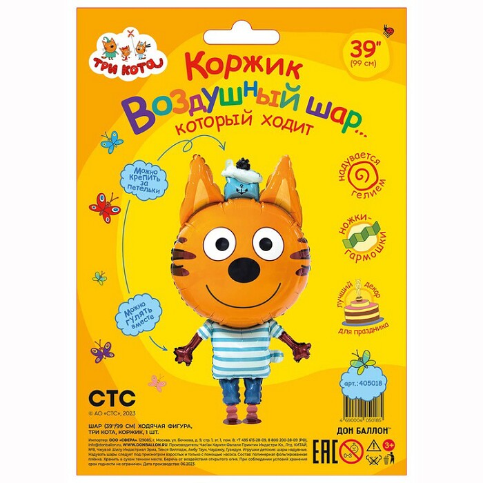 Ходячая фигура наполняется гелием. Любимые герои Три Кота в формате ходячих фигур станут прекрасным подарком-игрушкой и веселыми друзьями на прогулке, ведь специальные грузики на ножках не дадут фигуре улететь, а с удобными петельками на лапках к ним легко привязать ленточку, за которую будет держаться детская ладошка. Ходячие фигуры также можно использовать при оформлении тематической фотозоны для еще более ярких и праздничных фото с героями мультфильма «Три кота».