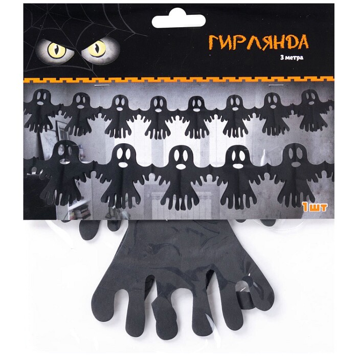 Гирлянда бумага 300см Привидение черное