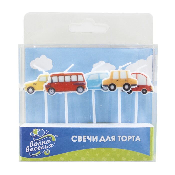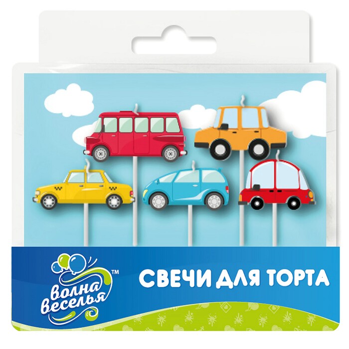 Свечи для торта 6 см, воск, 5 шт., на шпажках Любимые машинки