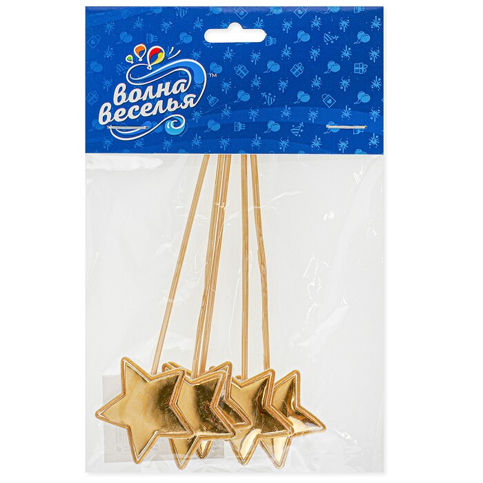 Пики Топперы Звезда Золото металлик 12см уп5