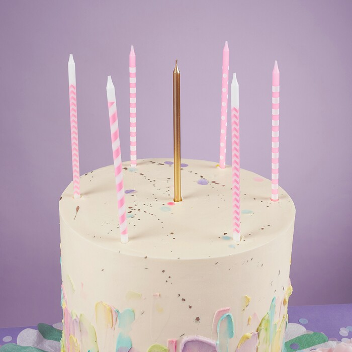 Свечи набор Точки и полосы Розовый Золото Металлик 14см (уп10)