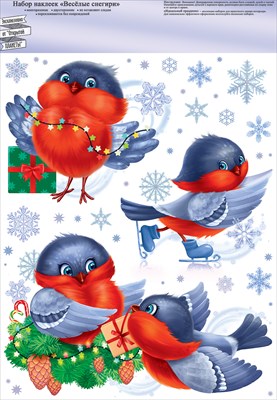 Наклейка для оформления А4 Веселые снегири (10шт)