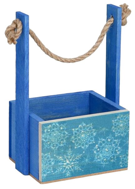 Кашпо с ручкой из веревки снежинки 15х8х8см