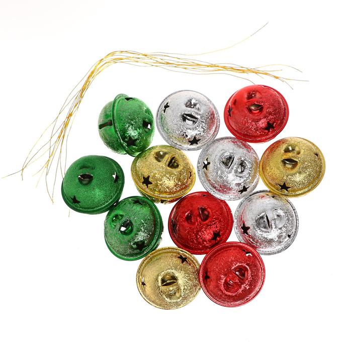 Игрушки на елку Бубенчики размер 3×3см цвет серебряный золотой красный зеленыйый (уп12)