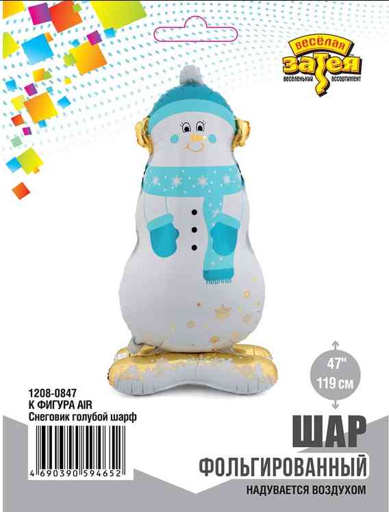 Шар фольга фигура AIR Снеговик голубой шарф 47" 119смВЗ (упак)