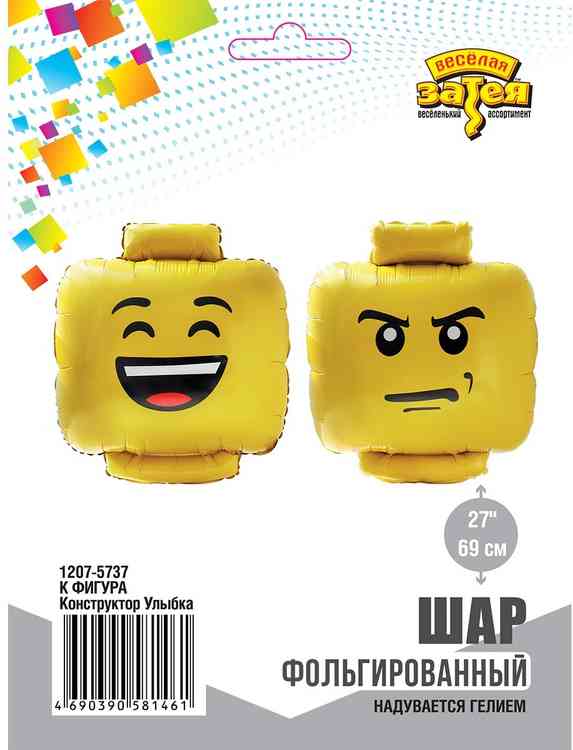 Шар фольга фигура Конструктор улыбка 27" 69см ВЗ (упак)