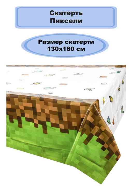 Скатерть полиэтиленовая. Используется совместно с другими элементами коллекции "Пиксели" как украшение стола или по своему непосредственному назначению. Размер 130 * 180 см.