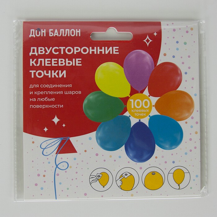 Двусторонние клейкие кружочки, которые позволяют надежно скреплять шары между собой или прикреплять к различным поверхностям.