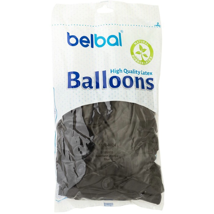 Воздушный шар из натурального латекса насыщенного синего цвета. Тип шара – кристалл. Яркий прозрачный шар. Шар Belbal – прекрасно подходит для розничной продажи, оформлений и рекламной печати. Шар способен долго удерживать гелий, что делает его лидером по длительности полета среди шаров других производителей. Идеален в букетах, за счет гармоничной, круглой формы. Шары Belbal имеют сертификат Intertek Tickmark, который гарантирует их безопасность. Изготавливаются из экологически безопасного 100%-ного натурального латекса. В окружающей среде разлагаются на безопасные компоненты примерно с той-же скоростью, как обычные листья деревьев. После использования шар рекомендуется лопнуть и утилизировать как бытовой отход.