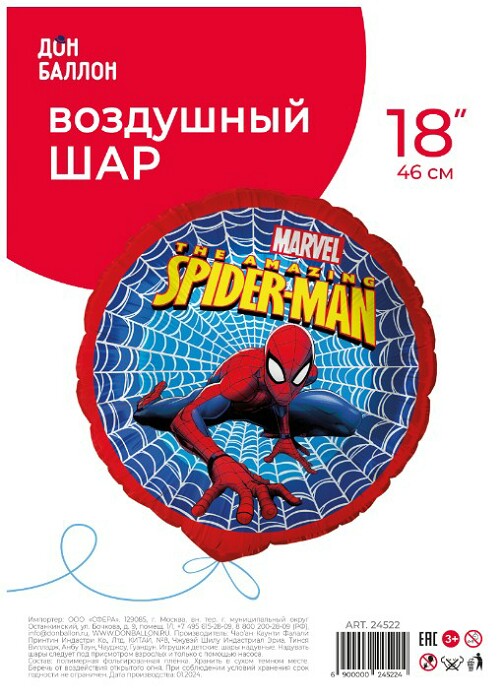 Шар фольга с рисунком 18'' FL Круг Человек Паук Дизайн №1
