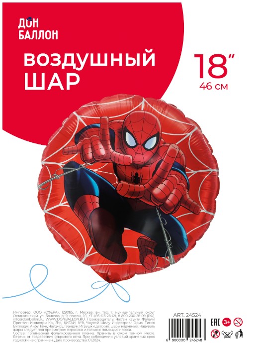 Шар фольга с рисунком 18'' FL Круг Человек Паук Дизайн №2