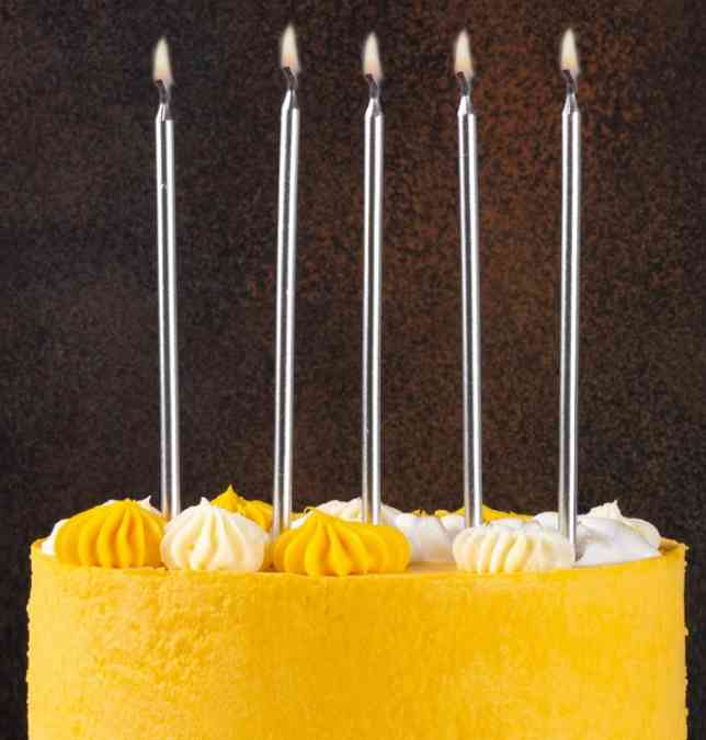 Украшение праздничного стола - металлизированные серебряные свечи. Отличное решение для декорирования торта, десерта ко Дню рождения, Романтическому ужину, Свадьбе, Юбилею, Новому году. Высота свечи 13см, диаметр - 0,5см, в упаковке 12 штук с подставками.