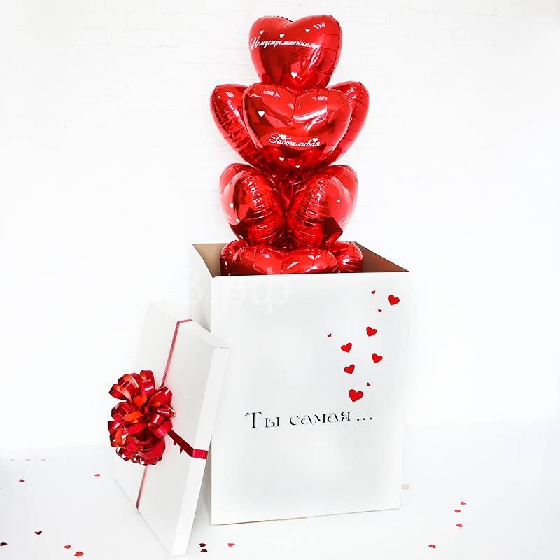 Коробка с воздушными шарами станет подарком-сюрпризом для любимого человека.