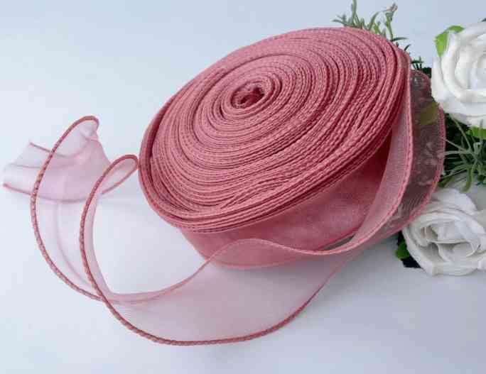 Лента декоративная 0,04х9,14м Органза с леской Дымчатая роза ДБ