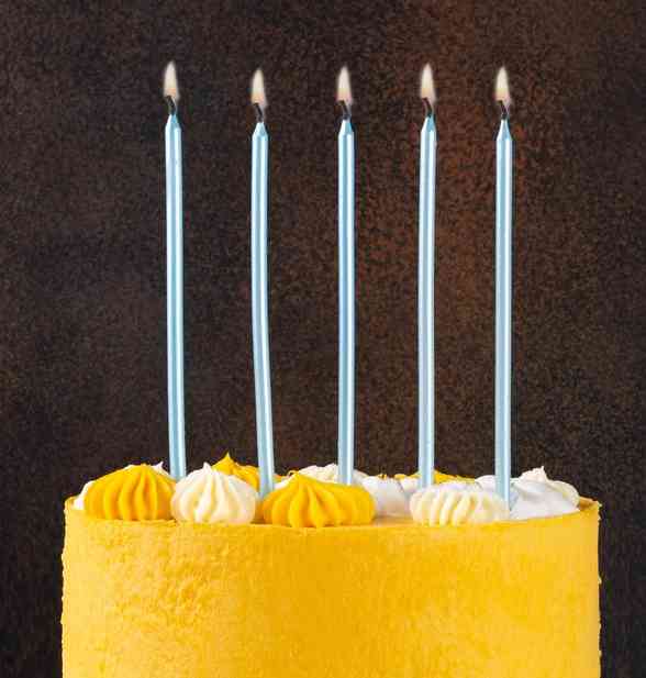 Украшение праздничного стола - металлизированные голубые свечи. Отличное решение для декорирования торта, десерта ко Дню рождения, Романтическому ужину, Свадьбе, Юбилею, Новому году. Высота свечи 13см, диаметр - 0,5см, в упаковке 12 штук с подставками.