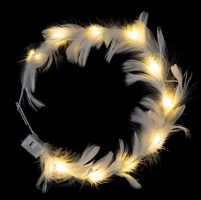 Светящийся венок с перьями со встроенными белыми светодиодами - стильный аксессуар для придания женственности и загадочности на любой вечеринке, свадьбе, фотосессии. Элементы питания входят в комплект.