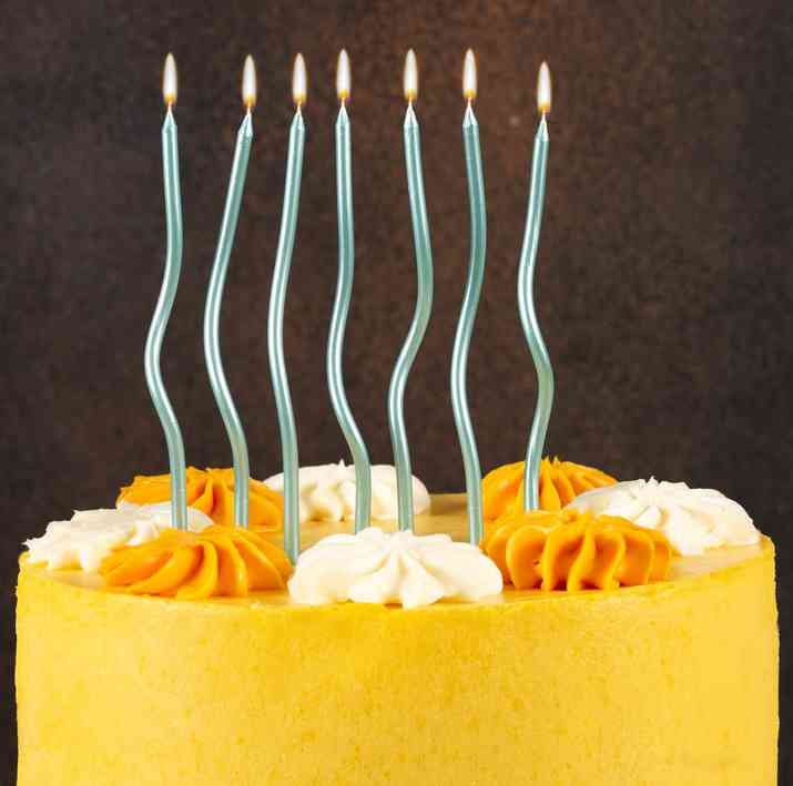 Свечи в виде тонких бирюзовых спиралек с подставками, изящное украшение для торта. Главное - успеть загадать желание, глядя на искрящийся каскад свечей. В упаковке 12 штук высотой 13 см.