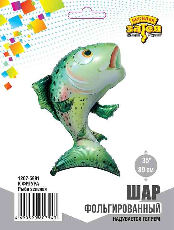 Шар фольга фигура Рыба зеленая 35" 89смВЗ (упак)