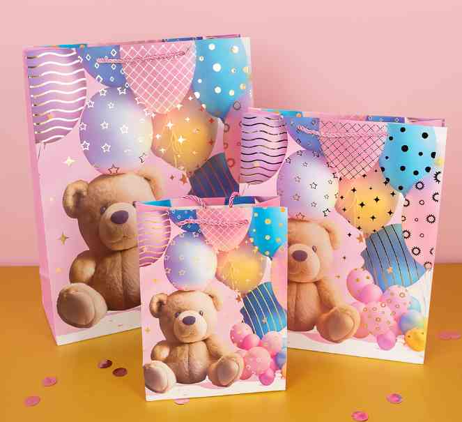 Пакет бумажный XL 31х41см Мишка с шариками Дизайн №1 Металлик