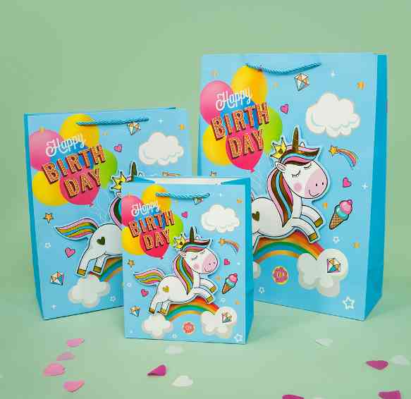 Пакет бумажный L 26х32см Happy Birthday Детский праздник Дизайн №4 Металлик