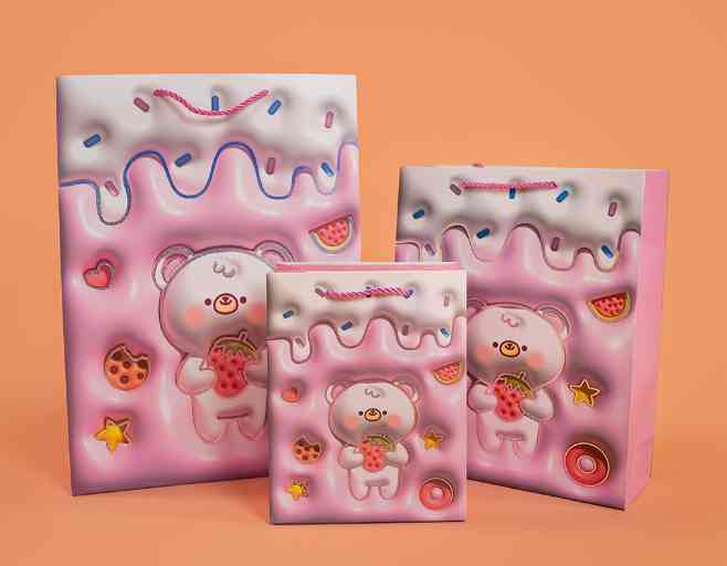 Пакет бумажный L 26х32см Зефирный мишка Дизайн №1 Металлик