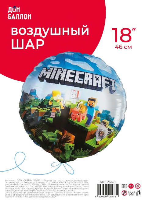 Шар фольга с рисунком18''FL круг Пиксельные человечки Дизайн №1 (упак)