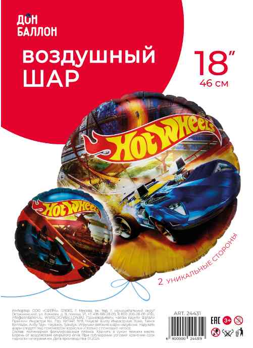 Шар фольга с рисунком 18" FL круг Горячие машинки