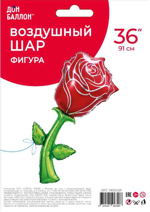 Шар фольга фигура Роза Красный 36" 91смFL (упак)