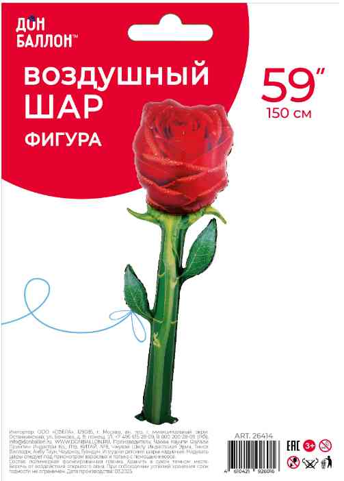Шар фольга фигура Роза Красный 59" 150смFL (упак)