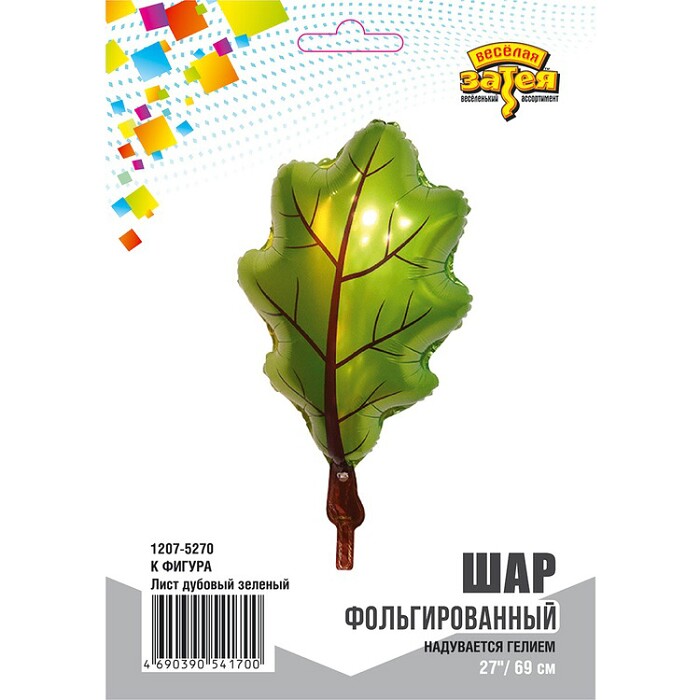 Шар фольга фигура Лист дубовый зеленый 27"69 СМ ВЗ