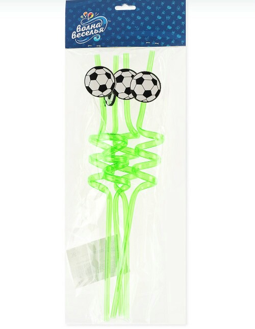 Трубочки для коктейлей пластик Футбол Зеленый уп4 ВВ