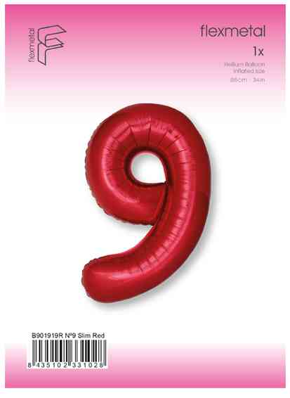 Шар фольга Цифра 40" Fm Slim Красный Металлик "9" (упак)