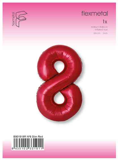 Шар фольга Цифра 40" Fm Slim Красный Металлик "8" (упак)