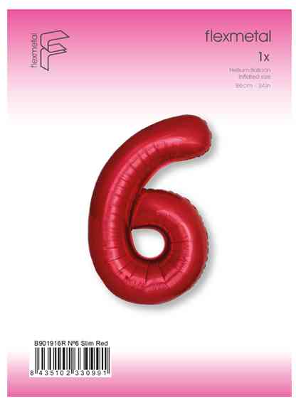 Шар фольга Цифра 40"Fm Slim Красный Металлик "6" (упак)