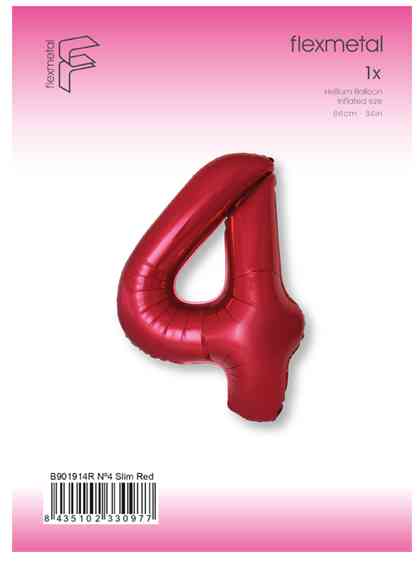 Шар фольга Цифра 40"Fm Slim Красный Металлик "4" (упак)