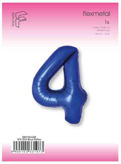Шар фольга Цифра 40"Fm Slim Синий хром Металлик "4" (упак)