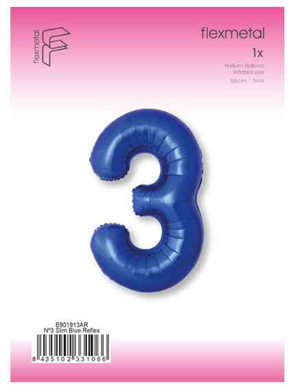 Шар фольга Цифра 40"Fm Slim Синий хром Металлик "3" (упак)