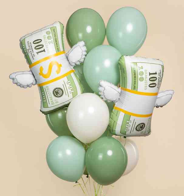Шар фольга фигура Доллары с крыльями 29" 74см FL (упак)